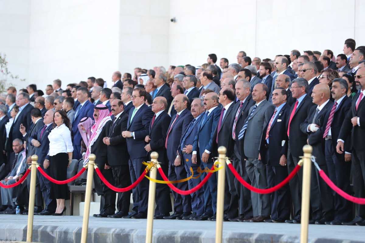 وحضر مراسم استعراض العلم عدد من أصحاب السمو الملكي الأمراء والأميرات والسيادة الأشراف، ورئيس الوزراء وزير الدفاع، ورئيس مجلس الأعيان، ورئيس مجلس النواب، ورئيس المجلس القضائي، ورئيس الديوان الملكي الهاشمي، ورئيس المحكمة الدستورية، ورئيس الهيئة المستقلة للانتخاب، ومدير مكتب جلالة الملك، ومستشارو جلالة الملك، والوزراء، وكبار موظفي الديوان الملكي الهاشمي، ومدراء الأجهزة الأمنية، وكبار المسؤولين من مدنيين وعسكريين، والسفراء المعتمدين لدى البلاط الملكي، وجمع من الفعاليات الوطنية والشعبية، وممثلو وسائل الإعلام المحلية والعربية والدولية.