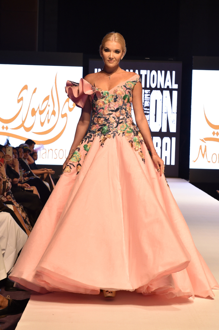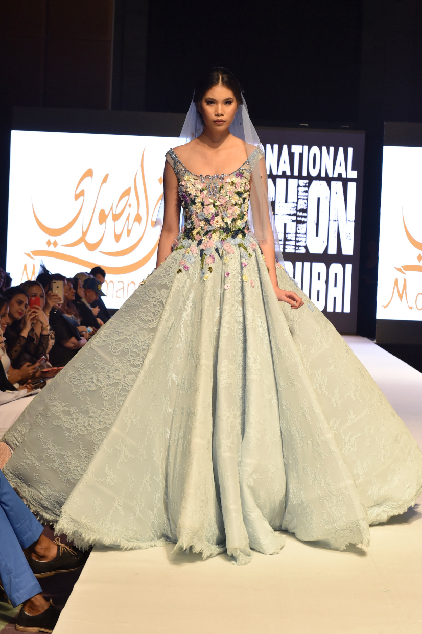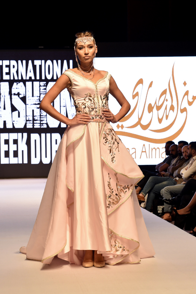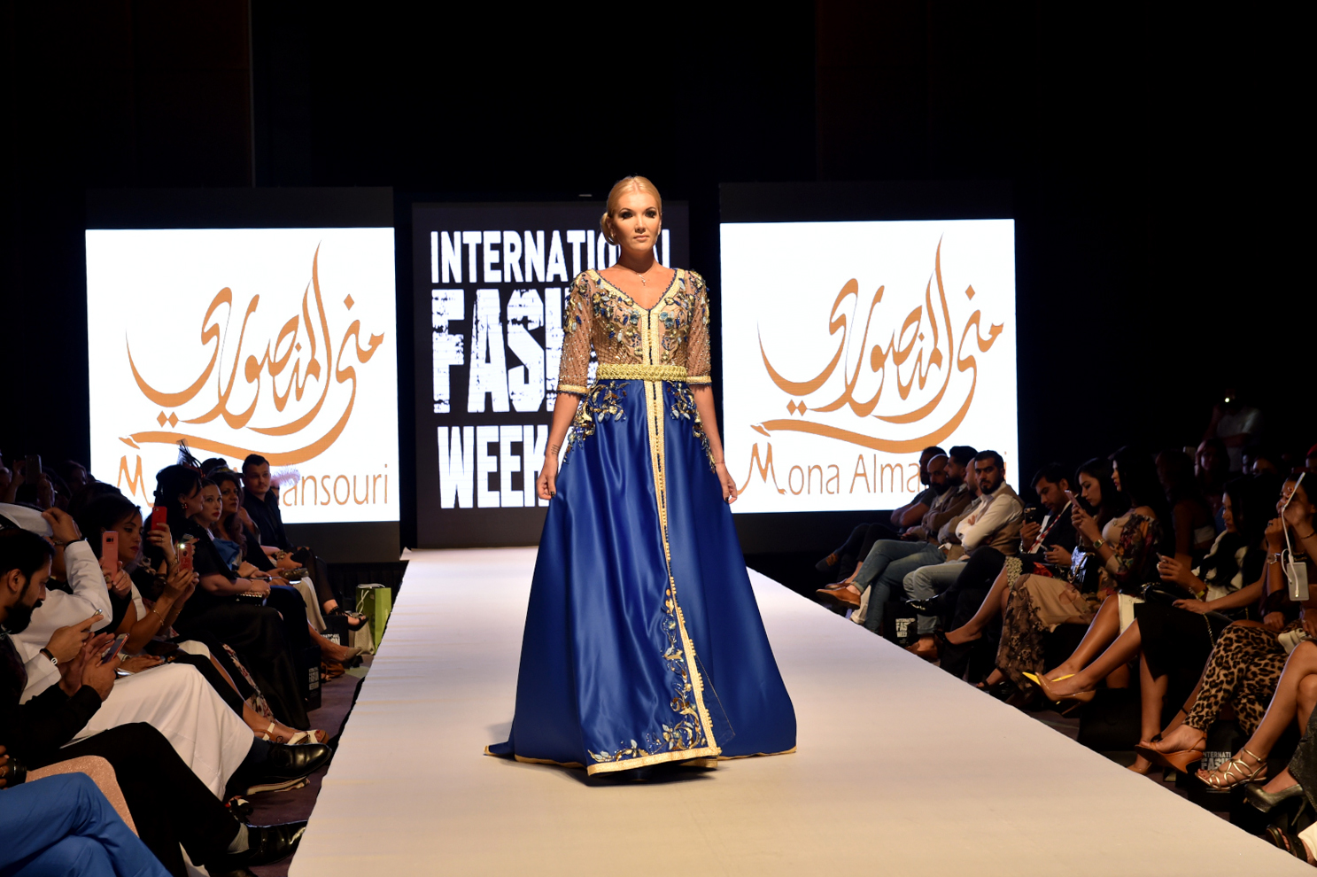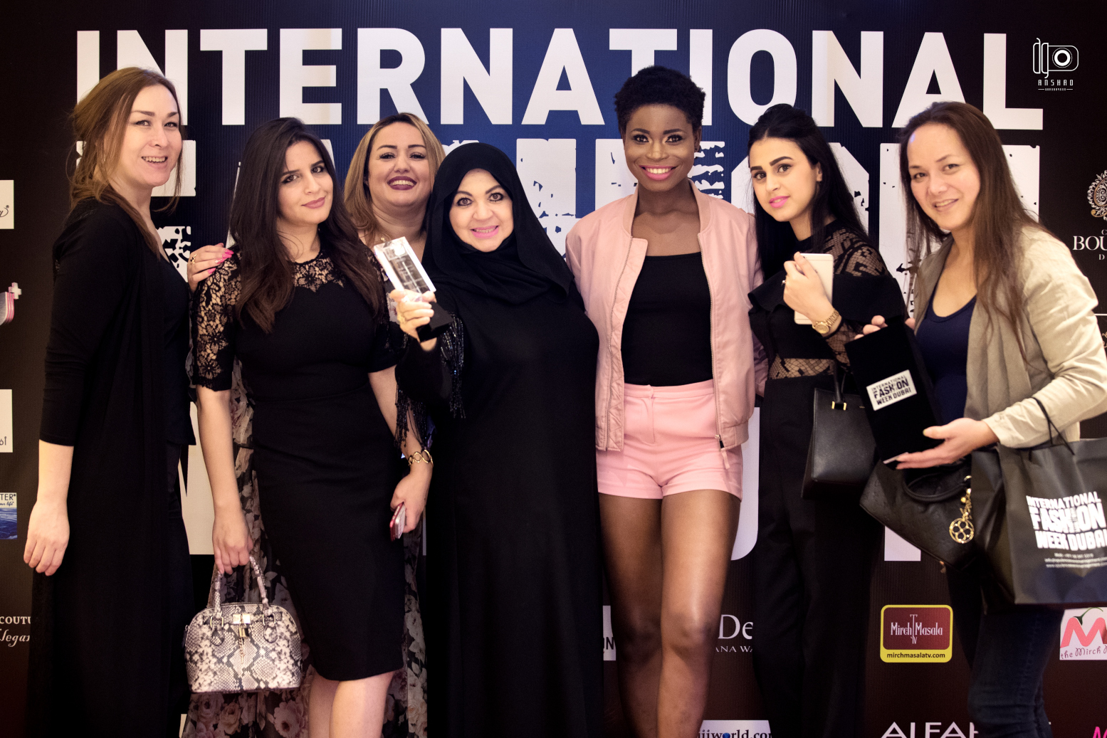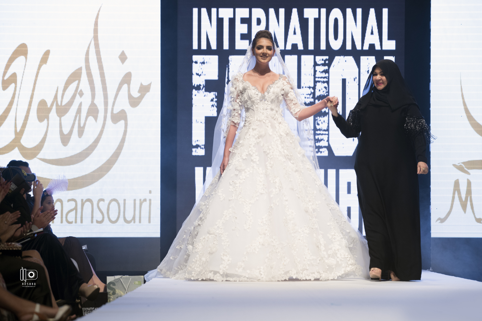 وتابعت: "اليوم لدينا حضور مميز من فنانين من بوليود وصحافة، ومصممين من إندونيسيا والهند وباكستان وطلاب من الجامعة الأمريكية، والحضور الأميز كان لخبيرة المكياج الإماراتية شمايل، المتخصصة بمكياج العرائس في راس للخيمة، وكدعم مني للمواطنات أحببت أن تشاركني في انترناشيونال فاشن ويك، لأنه عالمي، فصممت فساتين خطوبة وأجرت مكياج أعراس".