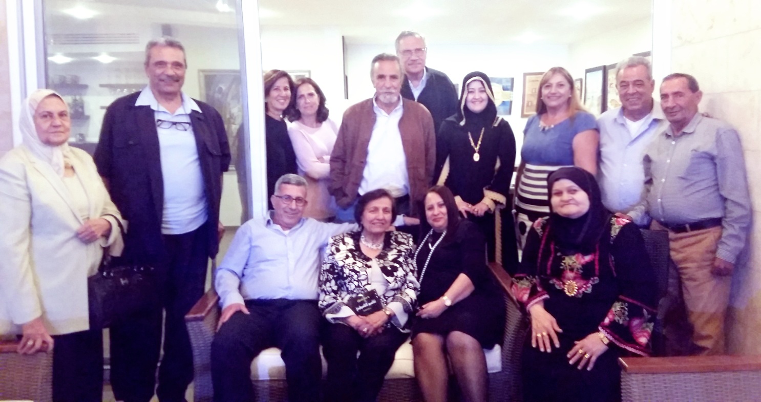 وقد جمع هذا اللقاء الأدبي كلّ من:المحامي الأديب فؤاد مفيد نقارة،رئيس نادي حيفا الثقافي،وزوجته السيدة سوزي نقارة، والناشط الثقافي الأخ المحامي حسن عبادي وزوجته،والرّوائيّ الفلسطينيّ حسين ياسين،والأديب المناضل د.سمير أيوب وزوجته،والمناضل معين الطاهر زوجته،والروائي د.عبد العزيز اللبدي وزوجته،والأديبة د.سناء الشعلان وأسرتها،والفنانة التشكيليّة تمام الأكحل.