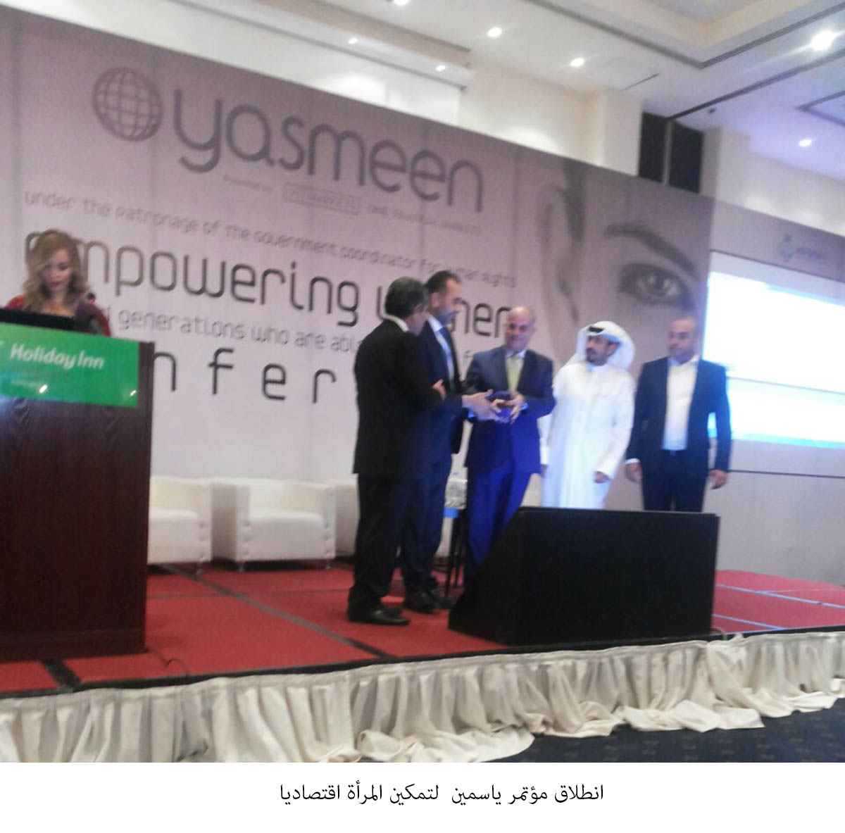 وفي نهاية الافتتاح سلم راعي المؤتمر الدروع التكريمية على عدد من النساء اللاتي يملكن قصص نجاح في استدامة المشاريع واخر ناجيات من السرطان، ودورهم بدعم النساء وتمكينهم خلال الفترة الماضية.
