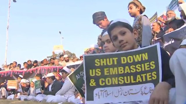 وذكر موقع قناة "جيو" المحلية، أن المتظاهرين في العاصمة إسلام آباد وفي مدن "كراتشي" و"بيشاور" و"لاهور"، أعربوا عن احتجاجهم ورفضهم لقرار ترامب الأخير.
