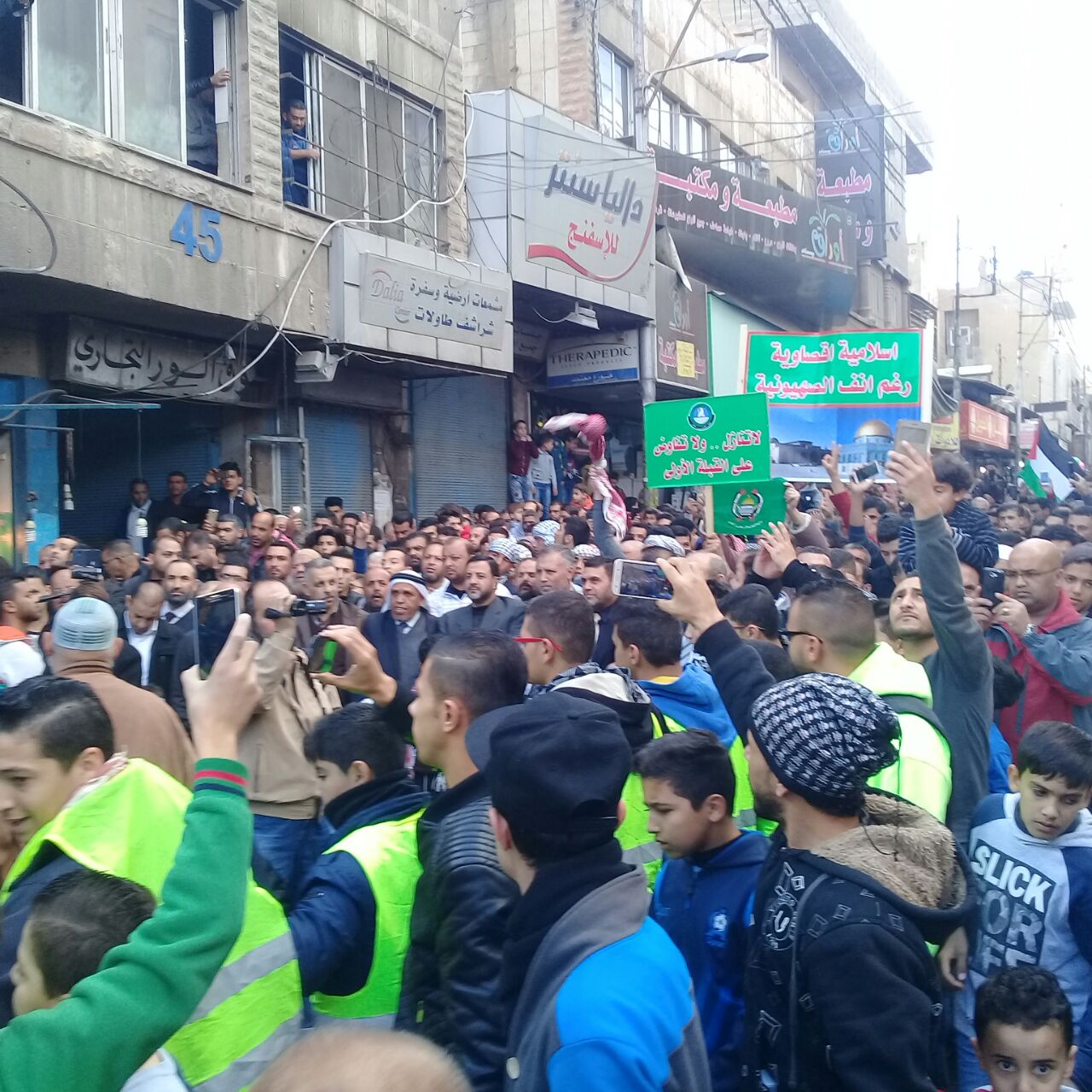 مسيرة من مسجد ابو داوود على دوار الامير هيا شارك فيها المئات انطلقت من أمام مجمع النقابات المهنة.