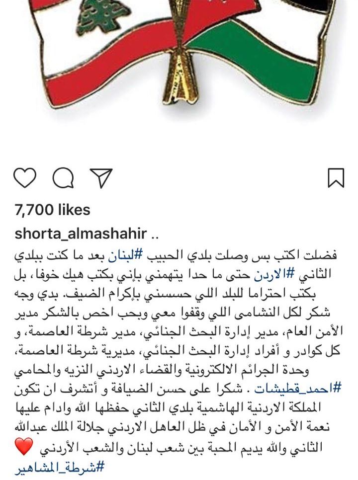 توقيف صاحب صفحة "شرطة المشاهير" بسبب ناشطة أردنية10-01-2018 08:31 PM