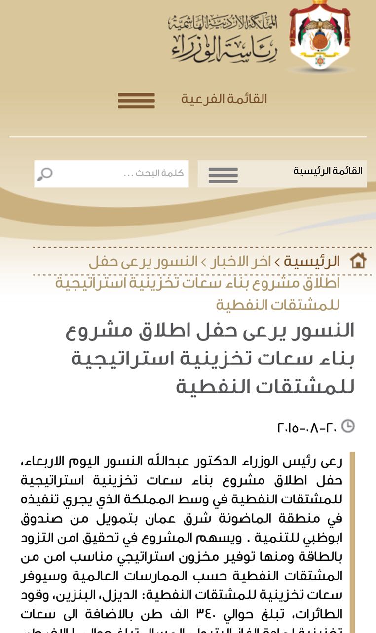 نذكر ايضا ان مشروع ( المخزون الاستراتيجي للمشتقات النفطية) تم إطلاقه في عهد حكومة عبدالله النسور عام 2015 في منطقة الماضونه شرق عمان بتمويل من ( صندوق ابوظبي للتنمية) اي بمنحة خليجية... ورغم ذلك قدمته الحكومة الحاليّه يوم امس بتقرير لجلالة الملك كأحد انجازاتها لعام 2017 !!.