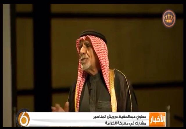 في تقرير بُثّ على التلفزيون الأردني قبل أيام ، أثارني الشيخ الجليل عطوي المناصير وهو يتلّمس بيديه حديد دبابته التي كان يقودها في معركة الكرامة ، كنت أرى التماعة في عينيه وهو يتذكر طاقم الدبابة واحدا واحدا (قائد السرية اللواء فاضل علي فهيد و محمد سالم عبدالله بني حسن وعواد حمدالله من سحاب ) ، دبابة الباتون اليوم تصطف بخشوع في متحف الدبابات الملكي في المقابلين بعدما أعيد ترميمها.