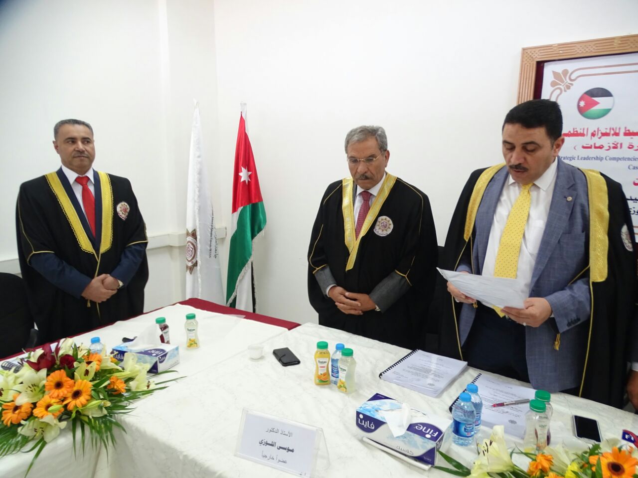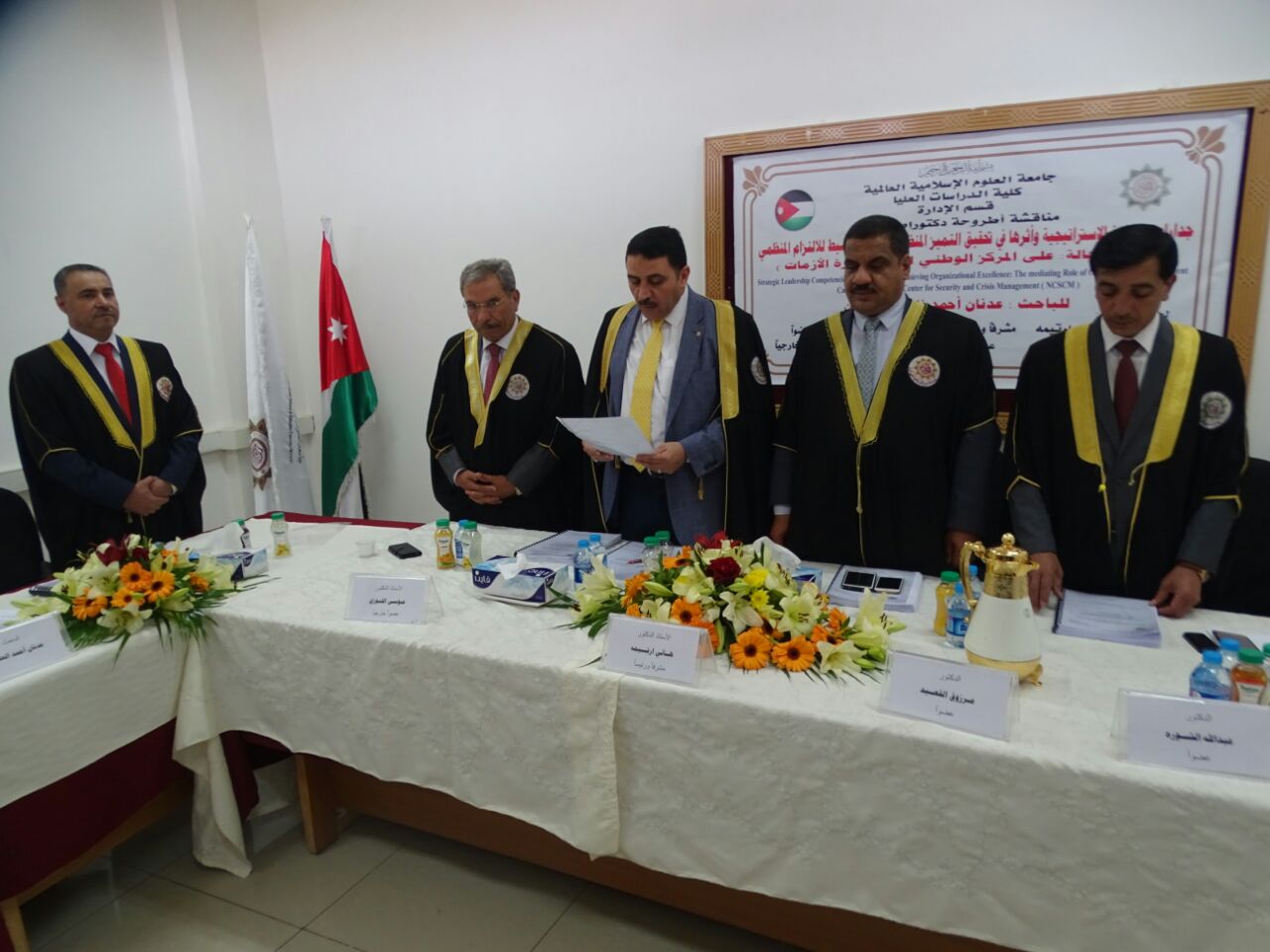 عمون - نال العميد الركن المظلي عدنان أحمد العلوان العبادي نائب سمو الأمير علي رئيس المركز الوطني للامن وإدارة الأزمات شهادة الدكتوراه في جامعة العلوم الاسلامية العالمية عن اطروحته تحت عنوان " جدارات القيادة الإستراتيجية وأثراها في تحقيق التميز المنظمي: الدور الوسيط للالتزام المنظمي- دراسة حالة: على المركز الوطني للأمن وإدارة |