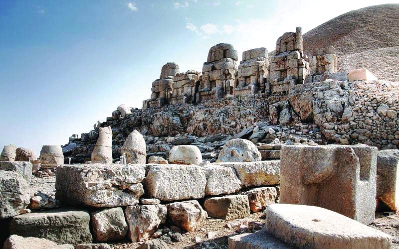 لكن كانت معظم التماثيل مقطوعة الرأس، وهو فعل متعمد لا بسبب الزلازل أو عوامل التعرية، لكن رغم ضخامة التماثيل التي يتراوح طولها بين الثمانية والتسعة أمتار، إلا أنها جميعها لا تبدو سوى من حضارات أخرى، كالأسود والنسور التي تعود إلى الحضارة اليونانية والأرمنية، إضافة إلى تمثال لزيوس وآخر مرتبط بإله الزرادشت «مازدا» وهناك تمثال إله أبولو وغيره، وقد تمت إزالة معظم الرؤوس والإضرار بالهياكل المنحوتة.. لتبدو لنا الملامح في معظمها يونانية والملابس المنحوتة فضفاضة كالأرمن وكذلك طريقة ترتيب الشعر أرمينية، ذهاباً إلى بعض الأشكال التي تبدو في أغطيتها فارسية الهوية، ونحن نتساءل أمام كل ذلك، أين شخصية النمرود إذن أمام تلك الآثار التي تعتبر حديثة عن عهده وزمنه؟ ونتعجب لأننا نعلم بأن النمرود لم يكن إغريقياً أو أرمينياً أو فارسياً كما يؤكد المؤرخون، لأنه قادم من بلاد الرافدين.