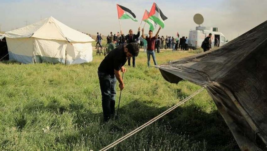 عمون - رغم حركات القمع الشديدة التي تقوم بها قوات الاحتلال الاسرائيلي ضد الفلسطينيين في مسيرات العودة القائمة بمناسبة يوم الارض الا ان الخيام على الحدود الشرقية المنتشرة على ٥ نقاط في قطاع غزة لا زالت متواجدة كما ان عشرات المواطنين يتوافدون الى الحدود الشرقي للقطاع يقيمون العديد من الفعاليات التراثية والثقافية التي تؤكد على حق عودتهم للبلاد التي هجروا منها ويؤكدون على العادات والتقاليد الفلسطينية.
