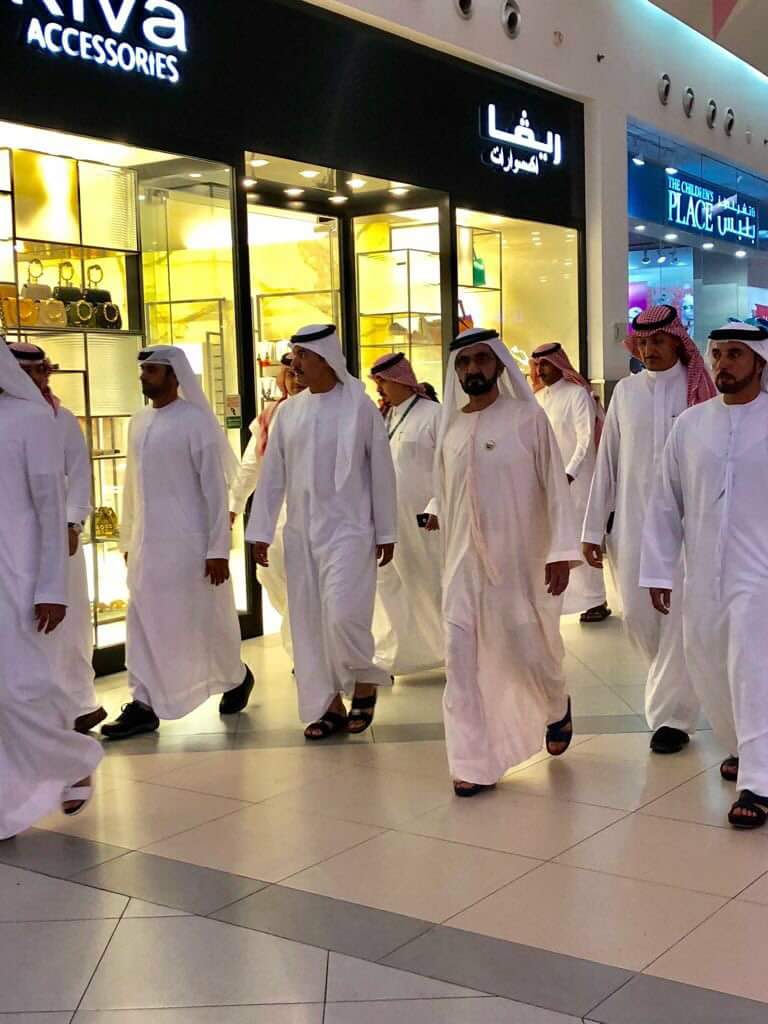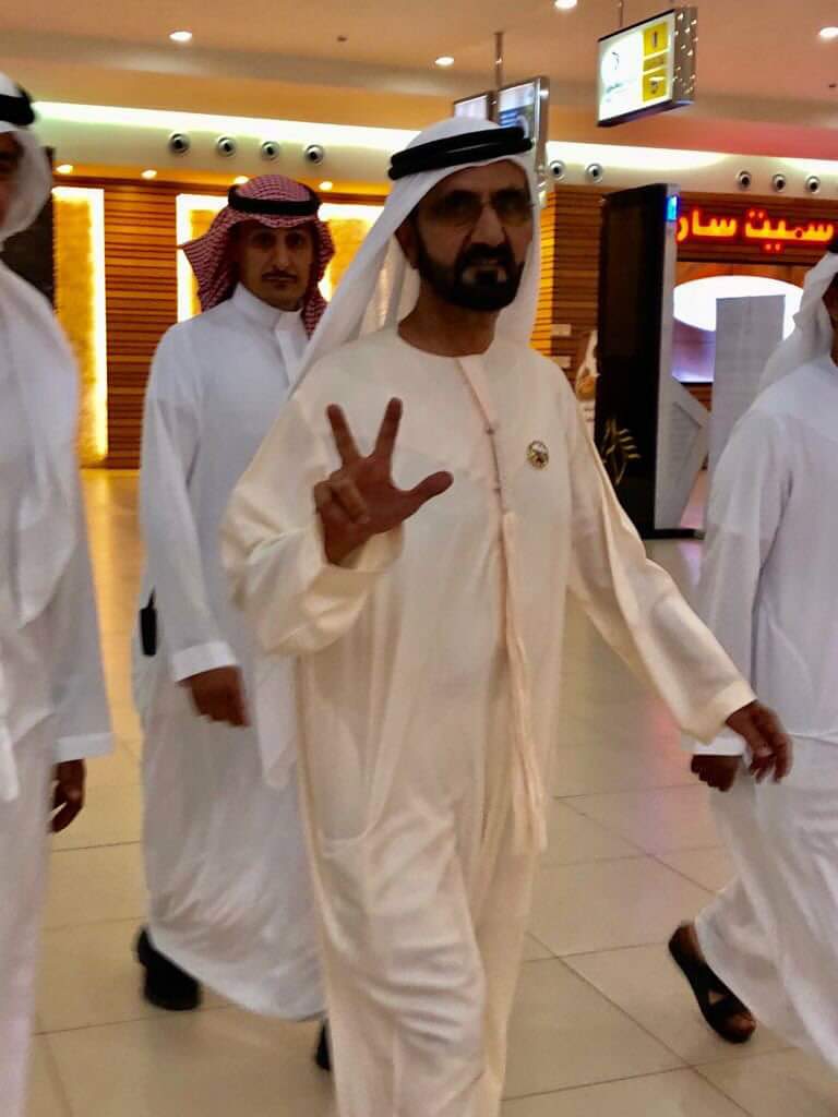 عمون - استغل الشيخ محمد بن راشد رئيس الوفد الاماراتي للقمة العربية وجوده في الظهرن ان زار مول الظهران وتجول فيه .. الشيخ محمد اعطى للمصورين من المتسوقين اشارته الثلاثية الخاصة المشهورة ..