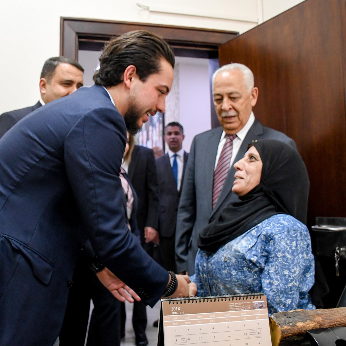 ونشر الامير الحسين بن عبدالله عبر صفحته الشخصية في موقع التواصل الاجتماعي تويتر صورة تجمعه بسيدة أردنية خلال زيارته لدائرة خدمة الجمهور في الديوان الملكي الهاشمي.
