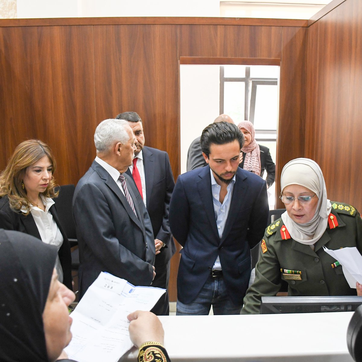 وعلق ولي العهد على الصورة: "من زيارتي اليوم لدائرة خدمة الجمهور في الديوان الملكي الهاشمي".