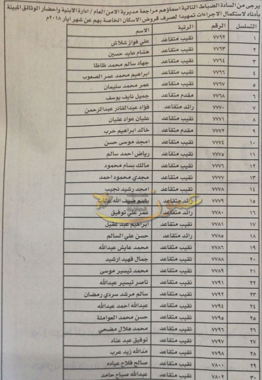 المستفيدون من اسكان ضباط الامن العام (اسماء)03-05-2018 11:42 AM