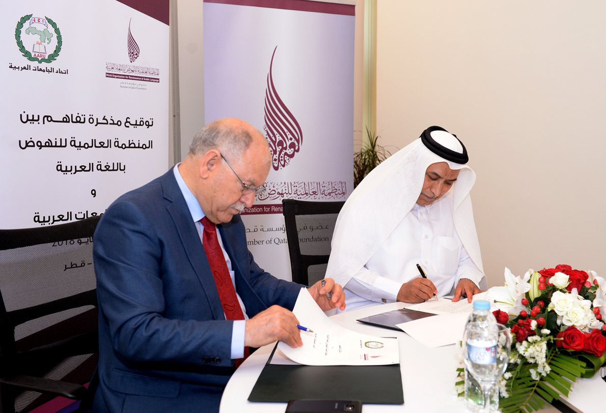 مذكرة تفاهم بين اتحاد الجامعات العربية والمنظمة العالمية للنهوض باللغة العربية