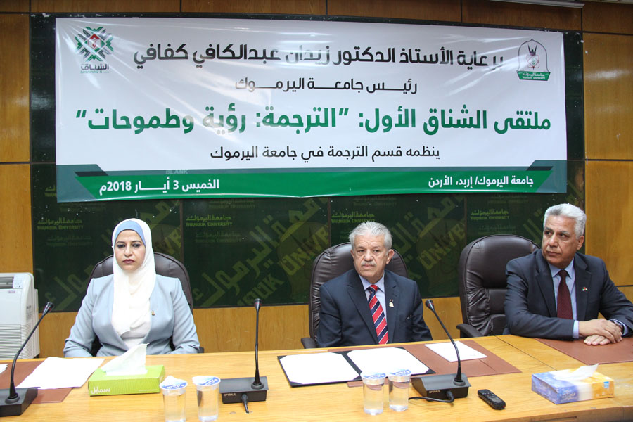 عمون - رعى رئيس جامعة اليرموك الأستاذ الدكتور زيدان كفافي افتتاح فعاليات ملتقى الشناق الأول "الترجمة: رؤية وطموحات" والذي نظمه قسم الترجمة في كلية الآداب بالجامعة.