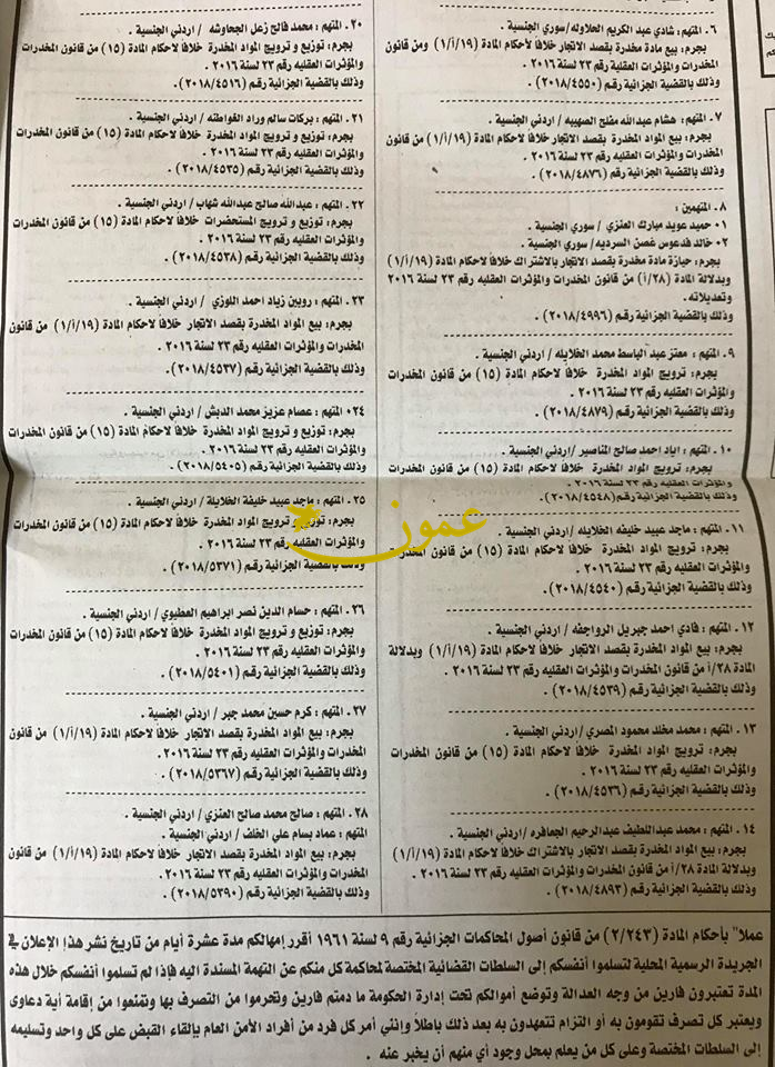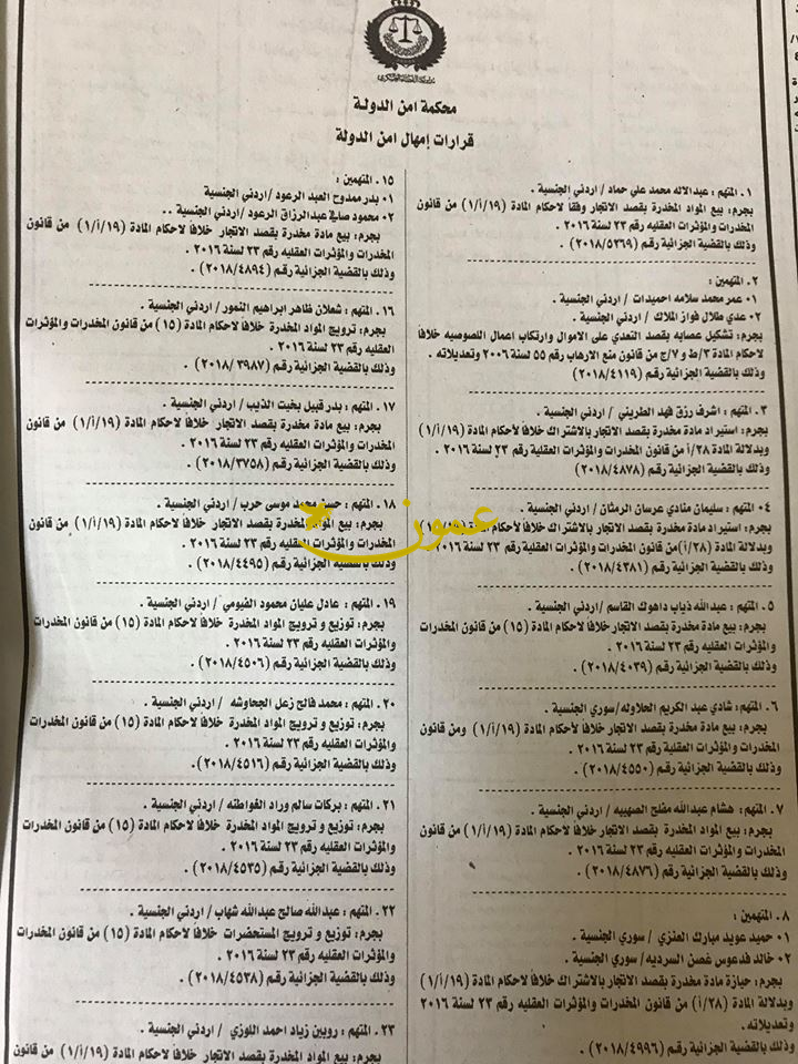 مطلوبون لمحكمة أمن الدولة (أسماء)06-05-2018 08:45 AM