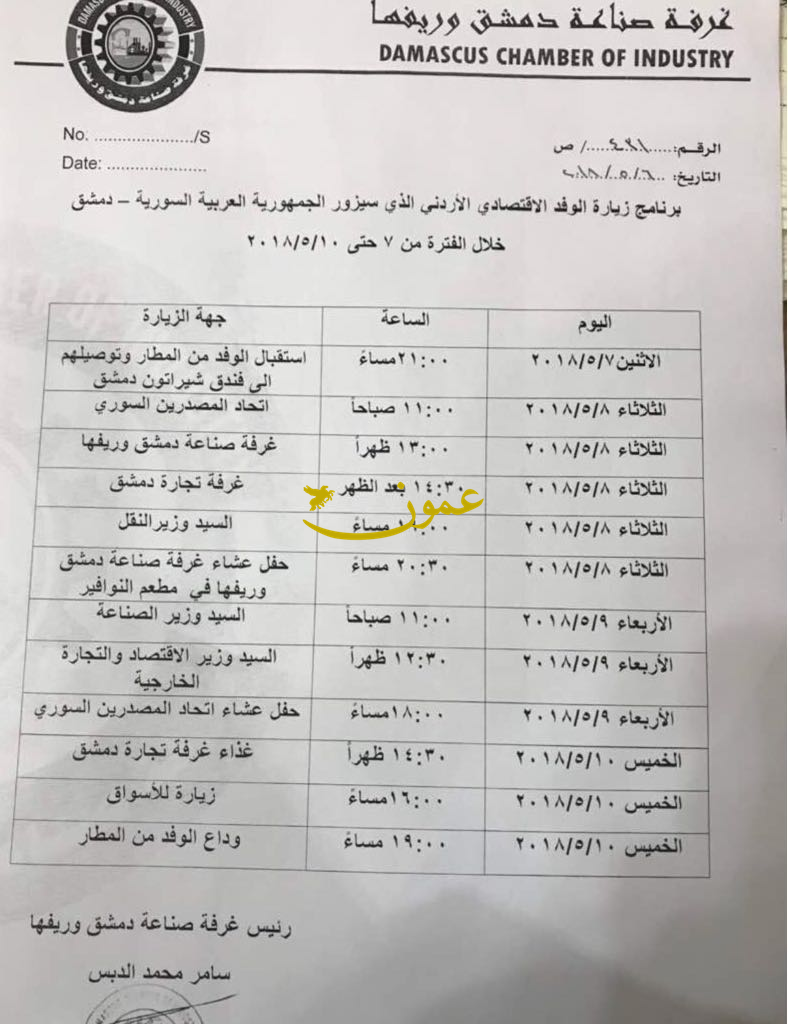 لأول مرة منذ سنوات .. وفد اقتصادي أردني في سوريا حتى الخميس08-05-2018 12:18 PM