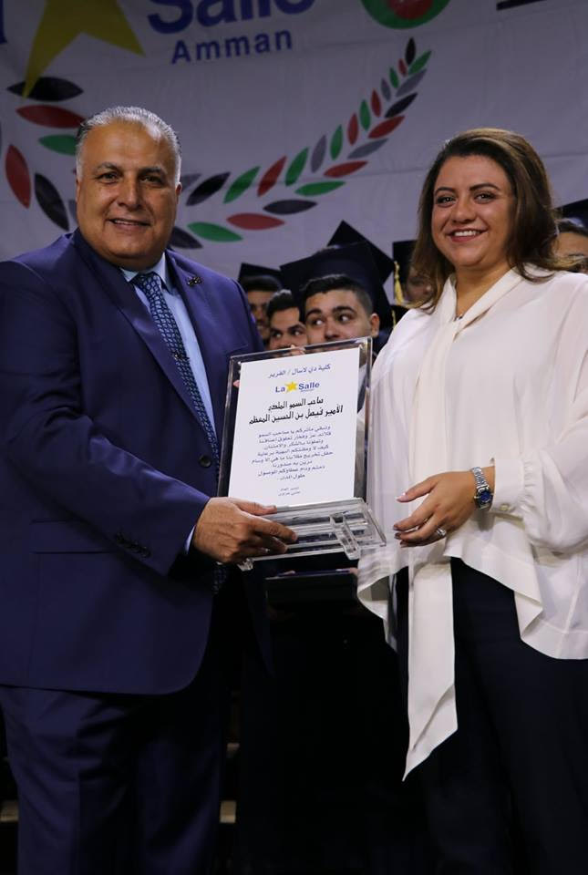 عمون - رعت الأميرة أية الفيصل بن الحسين مندوبة عن الامير فيصل بن الحسين، احتفال كلية دي لاسال/ الفرير بتخريج الفوج الواحد والستين من طلبتها المتميزين وسط حضور جمع غفير من أهالي الطلبة الخريجين والهيئتين الإدارية والتعليمية بالإضافة إلى عدد كبير من المدعوين لنزف إلى أردننا الغالي كوكبة من الخريجين، وذلك على مسرح قصر الثقافة في مدينة الحسين للشباب.