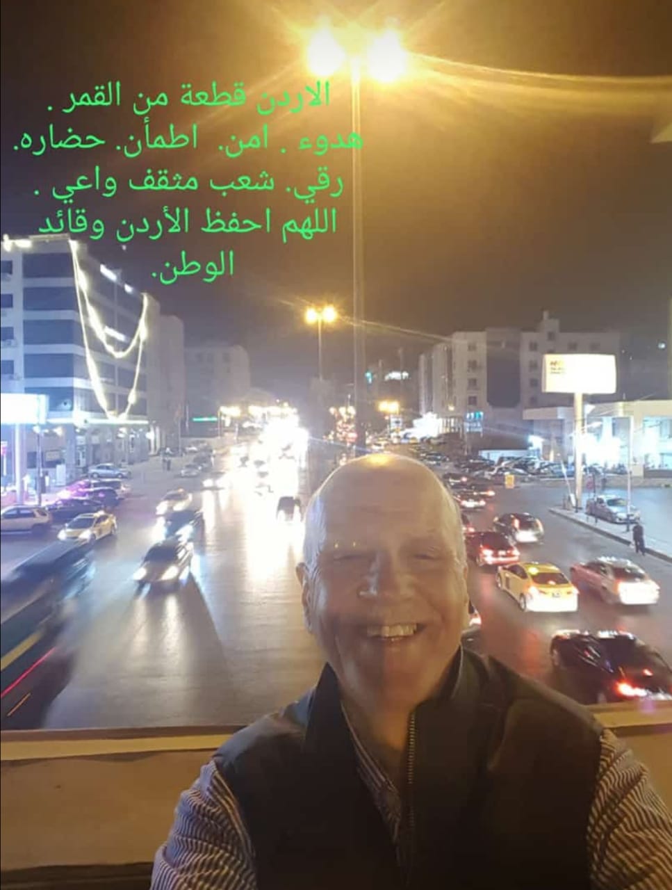 عمون - التقط دكتور علم الاجتماع حسين الخزاعي صورة سيلفي لنفسه يظهر خلفه احد شوارع العاصمة عمان.