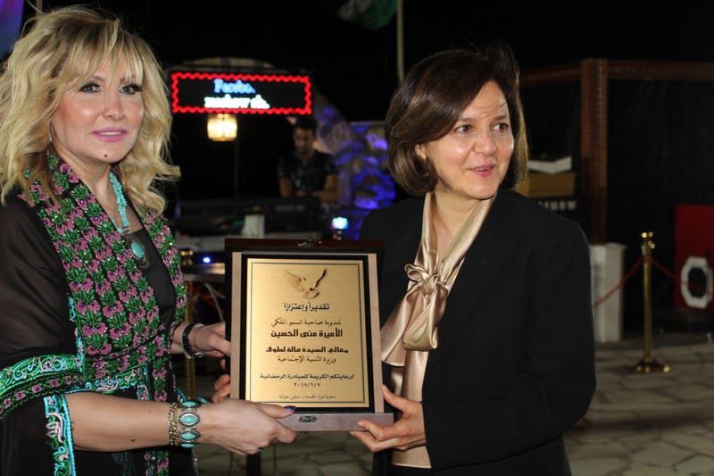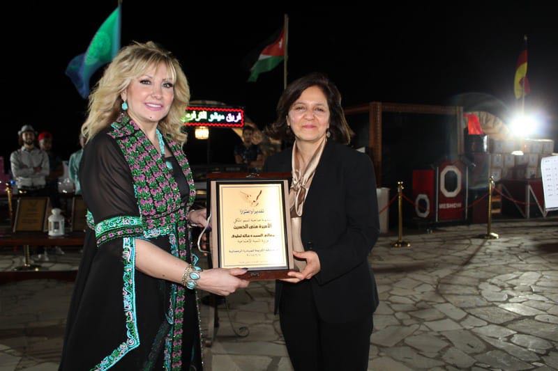 ثم قدمت حواتمة دروع التكريم لكبار الشخصيات الحضور أصحاب البصمة في عالم الانسانية ( وزيرة التنمية الاجتماعية مندوبة عن سمو الاميرة مني الحسين .