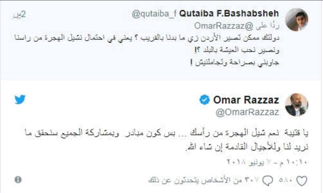 عمون - أطلق أردنيون عبر مواقع التواصل الاجتماعي وسم #هاجر_يا_قتيبة احتجاجا على تشكيلة حكومة الدكتور عمر الرزاز.