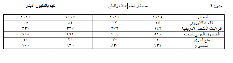 3- يظهر الجدول رقم 2 مبالغ المنح التي تلقها الاردن خلال السنوات الاخيرة والدول التي دفعتها، حيث ظلت المنحُ والمساعدات ضمن مُعدلها العام دون نقص ملحوظ خلال السنوات 2012 وحتى 2017 بما فيها المقدرة لعام 2018. ليس هذا فحسب، بل إن المساعدات والمنح للربع الاول من عام 2018 قد زادت بمبلغ 11 مليون دينار عن 2017. وبالتالي فان المزاعم التي اخترعتها حكومة د. الملقي لتمرير الضرائب الظالمة، وهو أن الاردن يعاني من أزمة مالية بسبب نقص المساعدات والمنح عقابا على موقفه من القدس، هي مزاعمُ رخيصةٌ و كاذبةٌ جُملة وتفصيلا، مستنداً في إستنتاجي هذا على أرقامِ الحكومةِ نفسها. بل إن هذه المزاعم مُسيئةٌ لعلاقاتنا مع من إعتاد أن يُقدم لنا المساعدات والمنح سواءا دول عربية أو اجنبية. وفي واقع الامر فان لا جديد في موقف الاردن وموقعه من القضية الفلسطينية عموما والقدس على وجه الخصوص. فلا زال موقف الحكومة ثابتا في تأييد حل الدولتين، كما ان الوصاية الهاشمية على القدس قديمةٌ ومتفقٌ عليها مع الاطراف المعنية وهي السلطة الفلسطينية واسرائيل. إضافة الى أن الوصاية الهاشمية منصوصٌ عليها باتفاقية وادي عربه، وهي اتفاقيةٌ دوليةٌ تضمنها الولايات المتحدة الامريكية باعتبارها راعية المعاهدة وكذلك مجلس الامن والامم المتحدة، وأي إخلال باي نص من نصوصها يجعل الاردن في حل من الاتفاقية برمتها أو من أي من نصوصها. ثم ما هي الفائدة العظيمة التي ستحصل عليها اي دولة لتنافس الاردن على الوصاية؟ إنها مسؤوليةٌ ثقيلةٌ تفوق ليس طاقة الاردن بل والدول العربية جميعها. أما أن يُعاقبَ الاردنُ لان الملك حضر مؤتمر اسطنبول بشأن القدس فإن هذا مُجرد هُراء. فهل كان لدى الملك أي مُسوغٍ لعدم حضور مؤتمر لمنظمة الدول الاسلامية هدفه الدفاع عن القدس التي يتولى الوصاية عليها، القدس التي كانت العاصمة الثانية للكيان الاردني، القدس التي تم احتلالها وباقي الضفة الغربية من الاردن. هذه المعطياتُ تجعلُ مِن الاردنِ أكثر الدول حماسا لحضور المؤتمر، وتجعلُ من الاردن ليس فقط لا يعتذر عن حضوره المؤتمر وانما ان يكون عاتبا على من لم يحضر ولكلٍ أسبابهُ التي لا تعكس بالضرورة الموقف من القدس بقدر ما تعكسُ العلاقاتِ الثُنائية بينَ الدولِ التي لم تشارك وتركيا. من جهة أُخرى، ما الذي فعله مؤتمر صلاة الجماعة على الميت الذي دعت اليه السلطةُ الحاكمةٌ في تركيا لاسباب دعائية بحتة، وهل غيرت شعارات المؤتمر قرار ترامب أو حررت القدس من الاحتلال الاسرائيلي؟ اهم مصدرين للمنح هما الولايات المتحدة الامريكية واوروبا. وهما لا ينافسان الاردن على الوصاية على القدس.