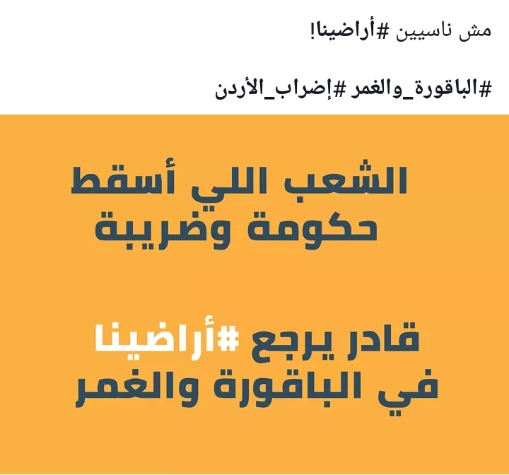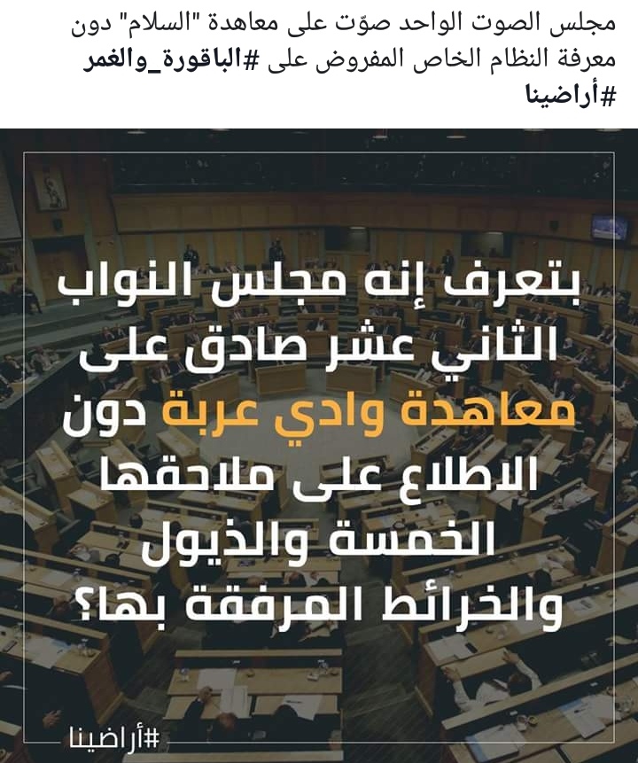 وتبنى الشارع الأردني مطالبات النواب باستعادة أراضي الباقورة والغمر من الأحتلال الاسرائيلي.