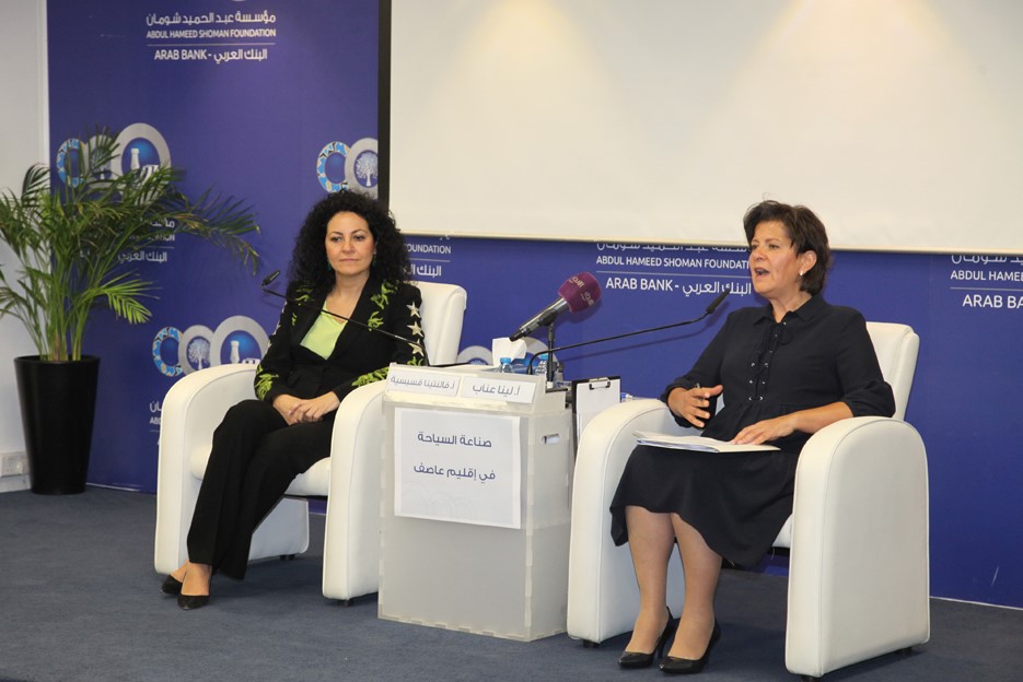 من جهتها، قالت قسيسية في كلمة لها " لعل التحدي، وربما الدافع الذي دعانا إلى إقامة هذه المحاضرة، يكمن في العنوان، فلو أن الأمر يقتصر على صناعة السياحة لكانت مهمة ضيفتنا أسهل، ولكان المجال مفتوحاً لكثير من الاجتهادات والإسهابات، أما عندما يتصل موضوع صناعة السياحة بالإقليم العاصف المحيط بنا، فإن المهمة بلا شك تكون أصعب".