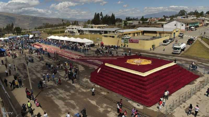 عمون- تستخدم بلدة بيدرو مونتايو في الإكوادور أكثر من نصف مليون زهرة زُرعت محليا في محاولة لتحطيم رقم قياسي عالمي ببناء هرم على غرار أهرامات الأجداد.