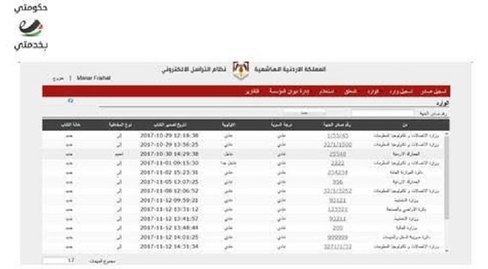 وبين ان اطلاق النظام جاء ضمن التوجه الحكومي نحو اردن رقمي وقامت وزارة الاتصالات وتكنولوجيا المعلومات باطلاقه، وهو نظام الكتروني وطني موحد للمؤسسات الحكومية لتبادل المراسلات الكترونيا بينها وتخزينها وتتبعها واسترجاعها وضمان سريتها.