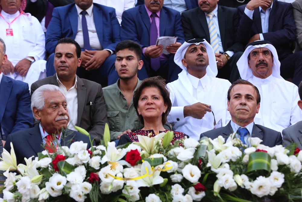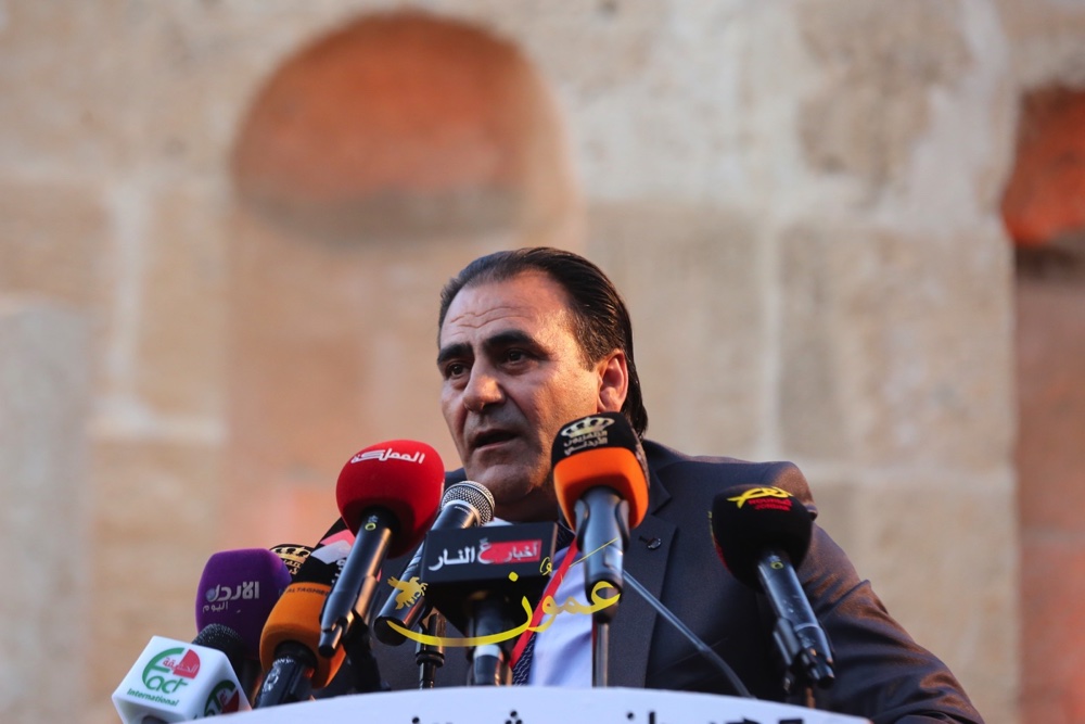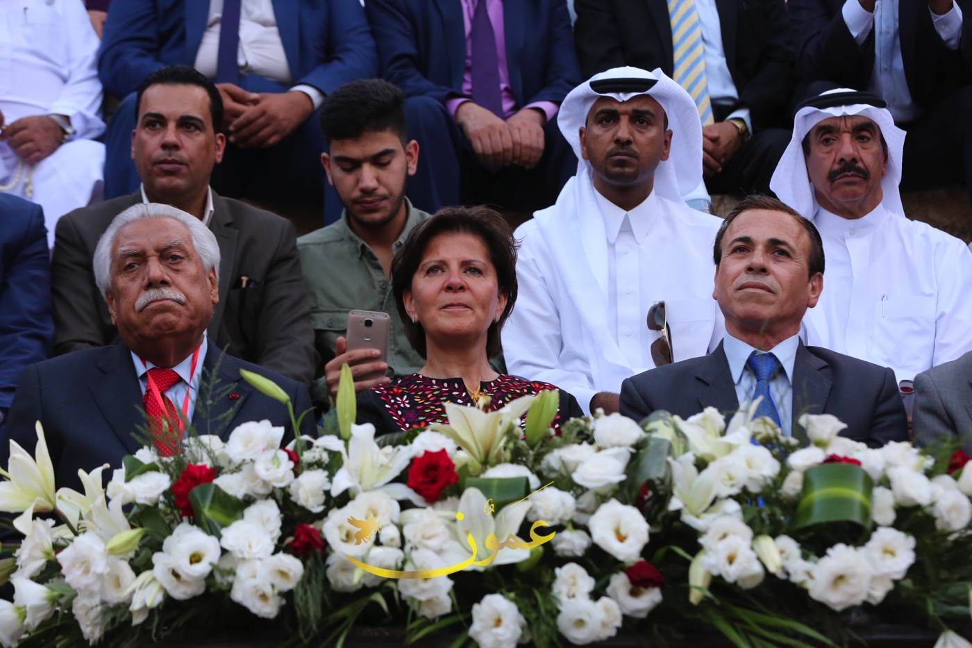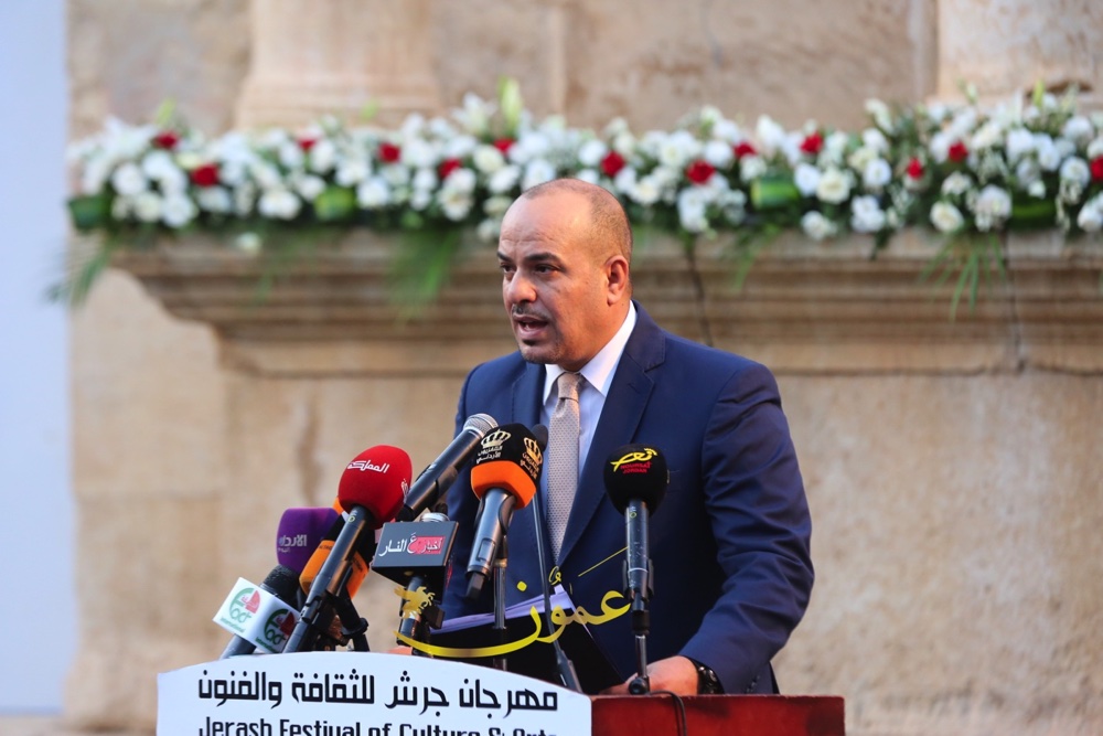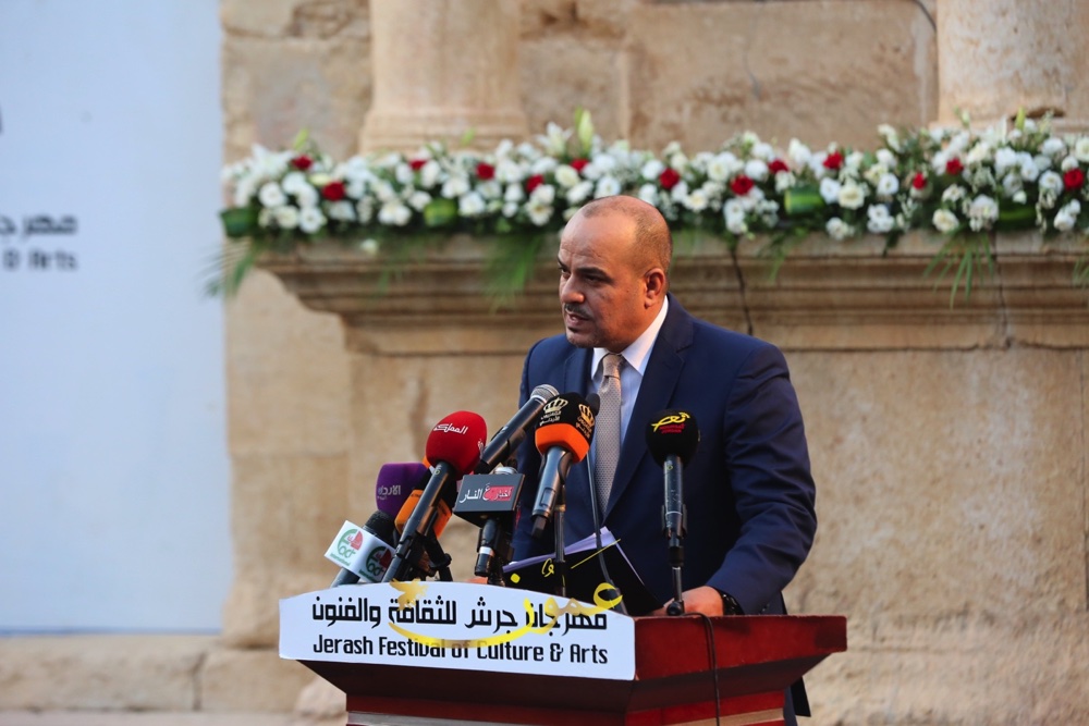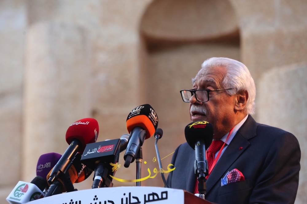 واضاف اننا في مهرجانِ جرش وإذ نحتفلُ بالأردنِ وحضورِهِ الثقافي العربي والعالمي، فإننا نحتفلُ أيضاً بتضحياتِ شهداءِ الوطن، الذين قدّموا أرواحَهم ليكونَ ممكناً لأخوتِهم وأبنائِهم أن ينعموا بحياةٍ رغيدةٍ آمنة، يعيشونَ تفاصيلَها ويسعدونَ بها، لافتا الى الاحتفال هذا العام بالذكرى الخمسين لمعركة الكرامة، حيث ان هذه المناسبةِ الوطنيةِ العظيمةِ تزيدُنا رسوخاً وثقةً في نوعيةِ وقيمةِ ما نقدّمُه من خلالِ هذا المهرجان، الذي يمثلُ بنجاحِهِ العالمي أحدَ وجوهِ نجاحِ الأردنِ والأردنيين في العملِ الإنساني وغيرِ المادي، حتى باتَ اسمَهُ صنواً للجودةِ الثقافيةِ والفنية، تتجلى في قيمةِ المشاركين فيه، وسمعتِهِم وجماهيريتِهم الكبيرة.