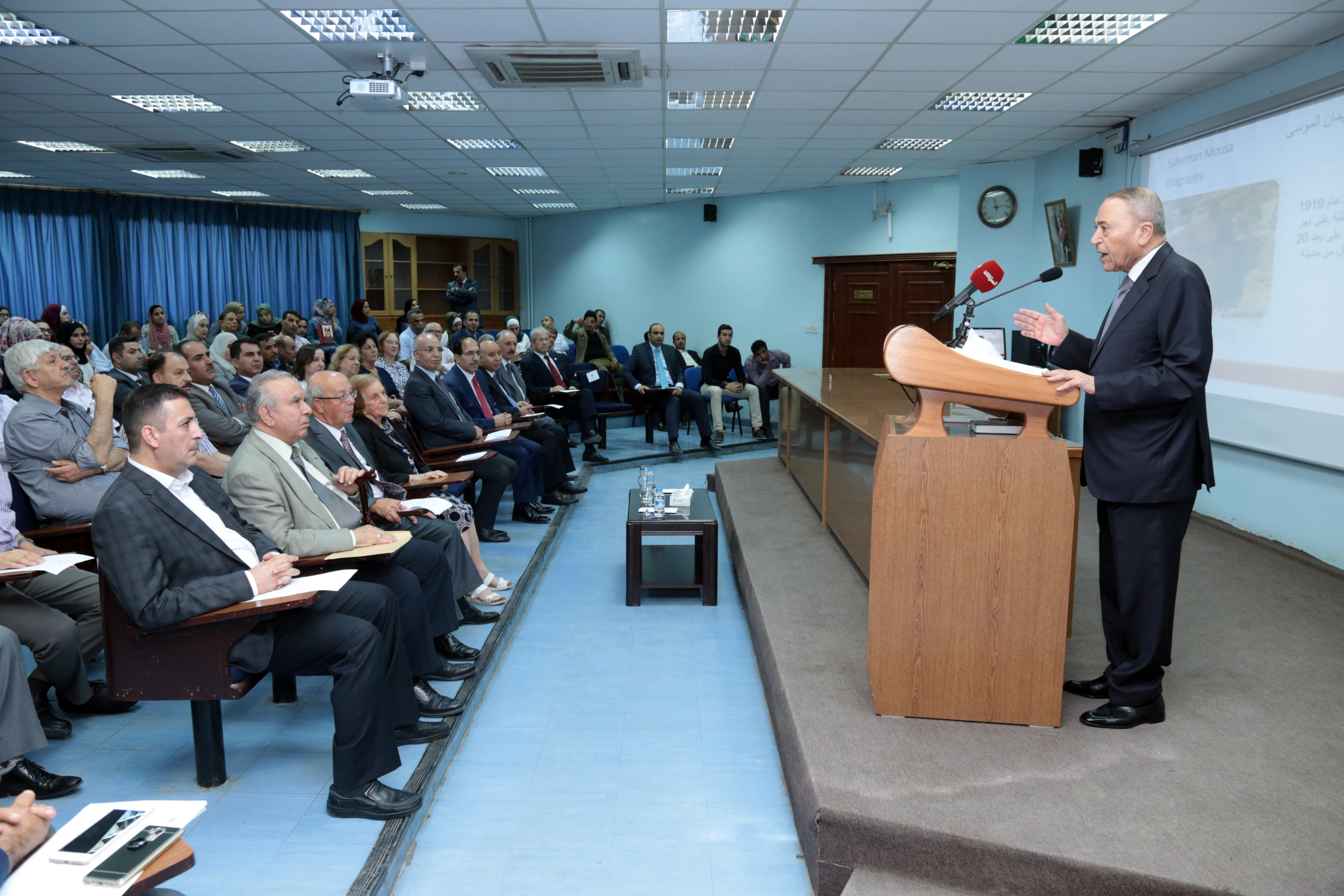 عمون - سناء الصمادي - افتتح العين الدكتور معروف البخيت اليوم الاثنين قاعة سليمان الموسى في كلية الاداب بالجامعة الاردنية بمشاركة واسعة من مؤرخين واكاديميين ومثقفين.