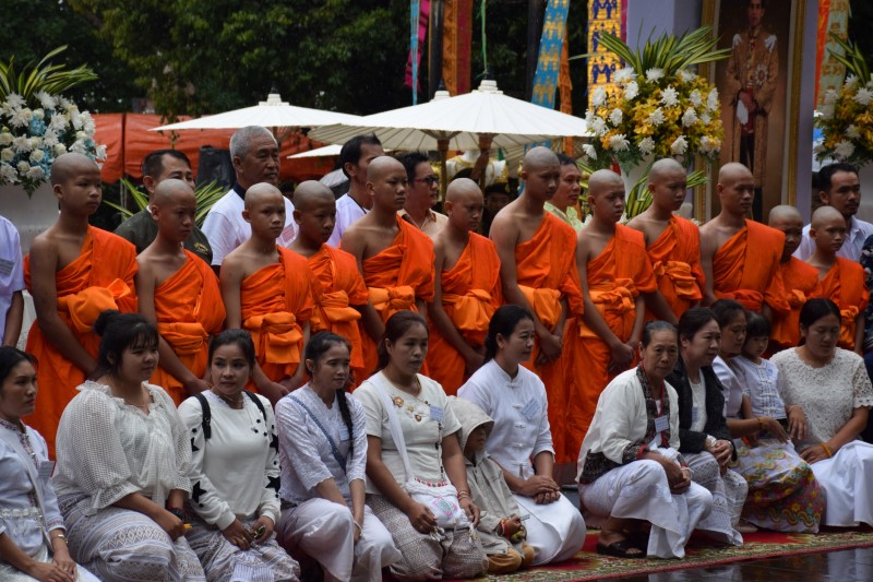وفي معبد (وات برا تات دوي تونج) في منطقة ماي ساي في تشيانج راي أنصت الفتة ومدربهم إيكابول تشانتاوونج البالغ من العمر 25 عاما لصلوات بوذية قبل منحهم ثيابا صفراء ليرتدوها في المراسم المفعمة بالمشاعر التي بثتها السلطات المحلية على الهواء مباشرة على موقع فيسبوك.