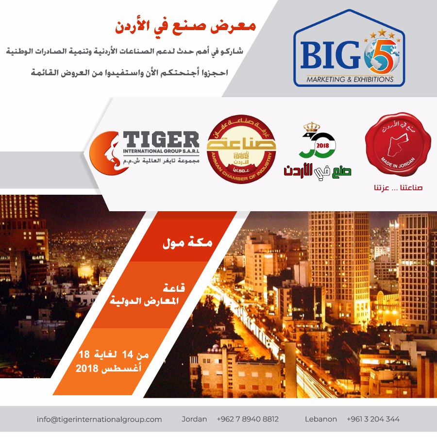 يشار ان شركة بيج فايف قد حصلت على الموافقة الرسمية لترويج المعرض تحت شعار " صنع في الاردن".
