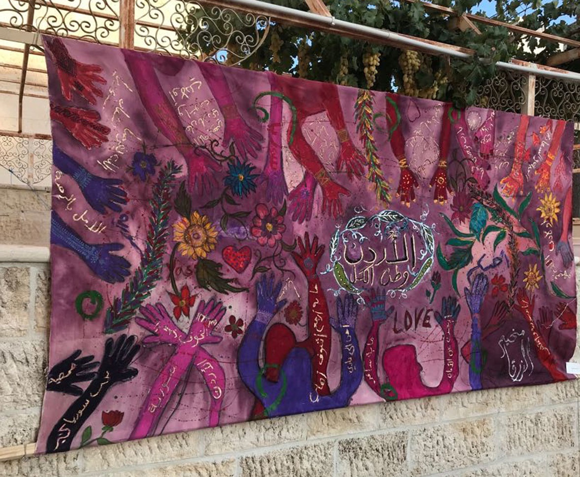 واللوحات الفنية تم إبداعها من قبل نساء لاجئات، بالتعاون مع الفنانة البريطانية المشهورة الدكتورة رايتشال جادستون ومساعدتها الفنانة الفلسطينية آمنة علي حسين، وبإشراف الدكتورة يافا شنيك.