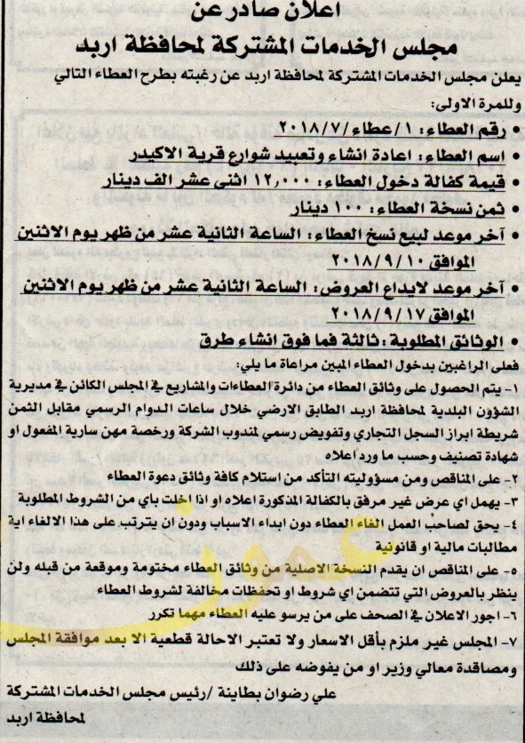 عطاء اعادة انشاء وتعبيد شوارع قرية الاكيدر