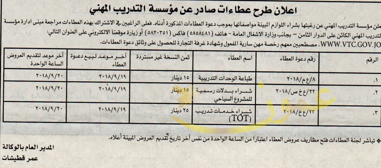 عطاءات صادرة عن مؤسسة التدريب المهني