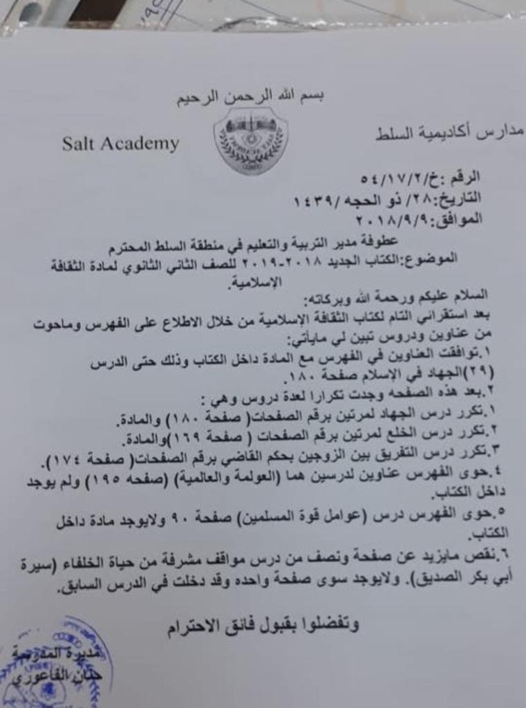 مُدَرِس: خلل في كتاب التربية الإسلامية للتوجيهي .. والتربية توضح