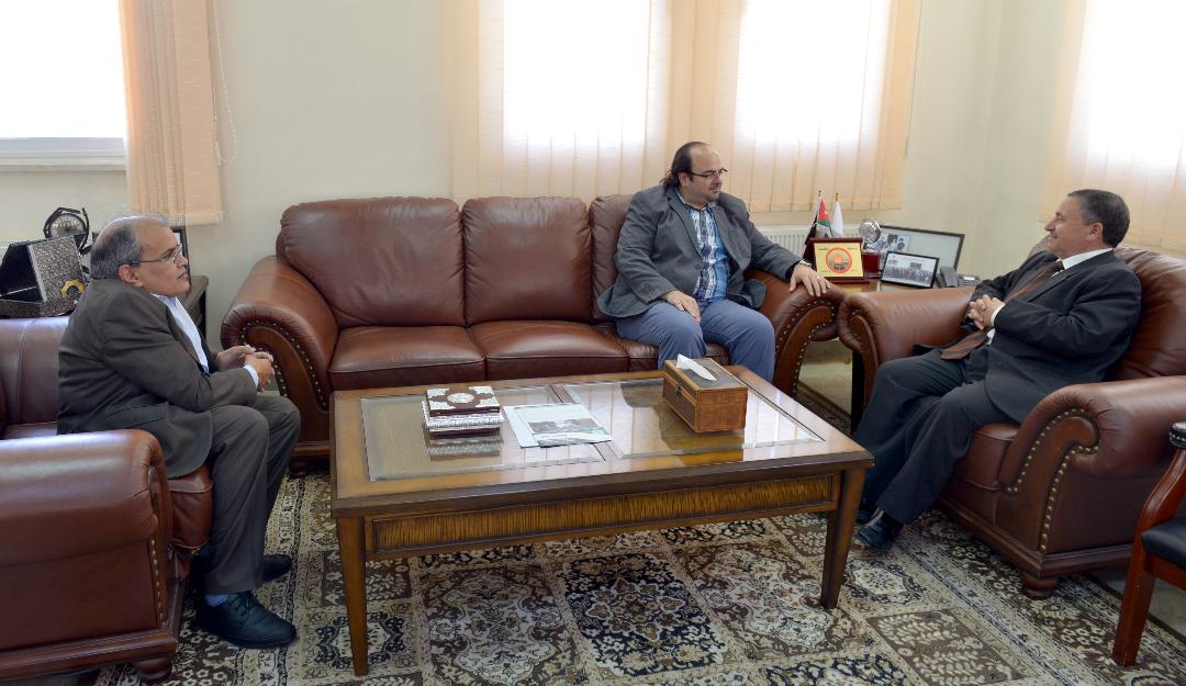 عمون – محمد الخوالدة - بحث رئيس جامعة الطفيلة التقنية الدكتور محمد خير الحوراني مع الدكتور سالم طويلة مدير مشروع التعليم الافتراضي في جامعة درسدن التقنية الالمانية اوجه التعاون المملكة بين الجامعتين وامكانية نقل تجربة الجامعة الالمانية لتطبيقها في جامعة الطفيلة .