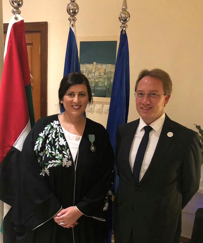 السفير الفرنسي في الإمارات يقلد منال عطايا وسام فارس للفنون والأدب الفرنسي