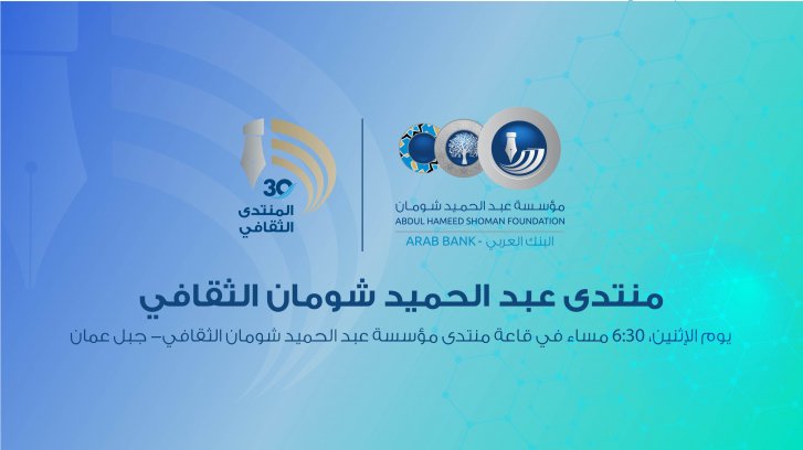 أصدقاء منتدى عبد الحميد شومان الثقافي، كونوا معنا في السادسة والنصف من مساء الإثنين 8 تشرين الأول (أكتوبر) 2018، في محاضرة للدكتور عمر حتاملة بعنوان "المستقبل والابتكار"، تقدمه فيها وتدير الحوار مع الجمهور الرئيسة التنفيذية لمؤسسة عبد الحميد شومان فالنتينا قسيسية.