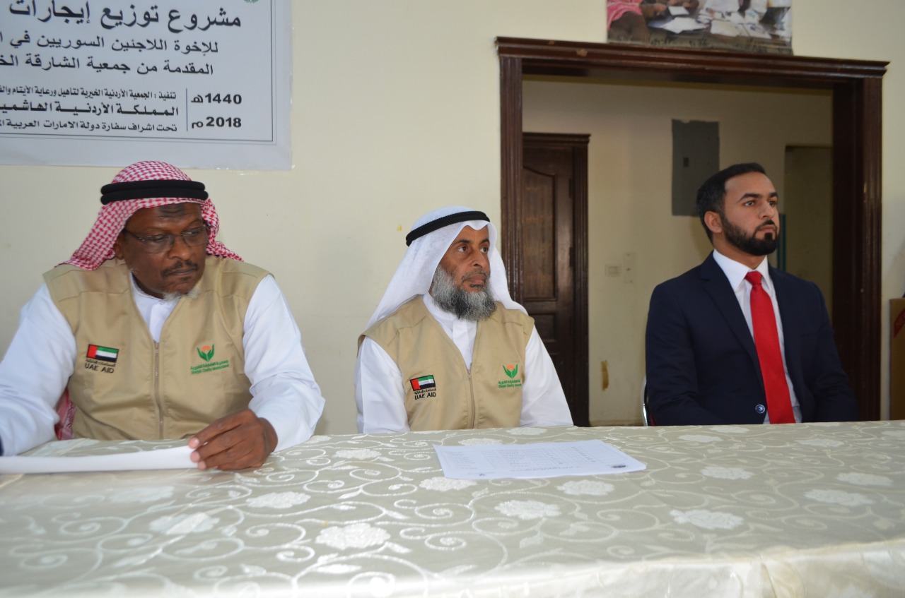 عمون - نفذت جمعية الشارقة الخيرية وبإشراف مباشر من سفارة دولة الإمارات العربية المتحدة بعمّان مشروع دفع أجور منازل ومعونات عينية لأسر عفيفة سورية وأردنية، بحضور السكرتير الثالث بسفارة الدولة بعمّان فهد العتيبي.