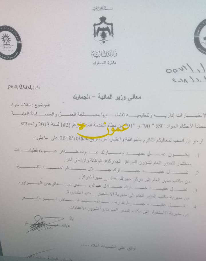 عمون - عاد العقيد عادل الهواري مديرا لمديرية الاستخبار الجمركي.