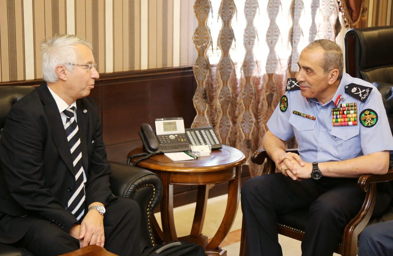عمون- استقبل مدير الأمن العام اللواء فاضل الحمود في مكتبه اليوم قائد شرطة ولاية بافاريا الألمانية وليم شميت باور يرافقه مدير شرطة ريجنسبورغ، حيث جرى التباحث في سبل تعزيز التعاون القائم بين جهازي الأمن العام في البلدين الصديقين في مجال تبادل الخبرات الشرطية والأمنية .