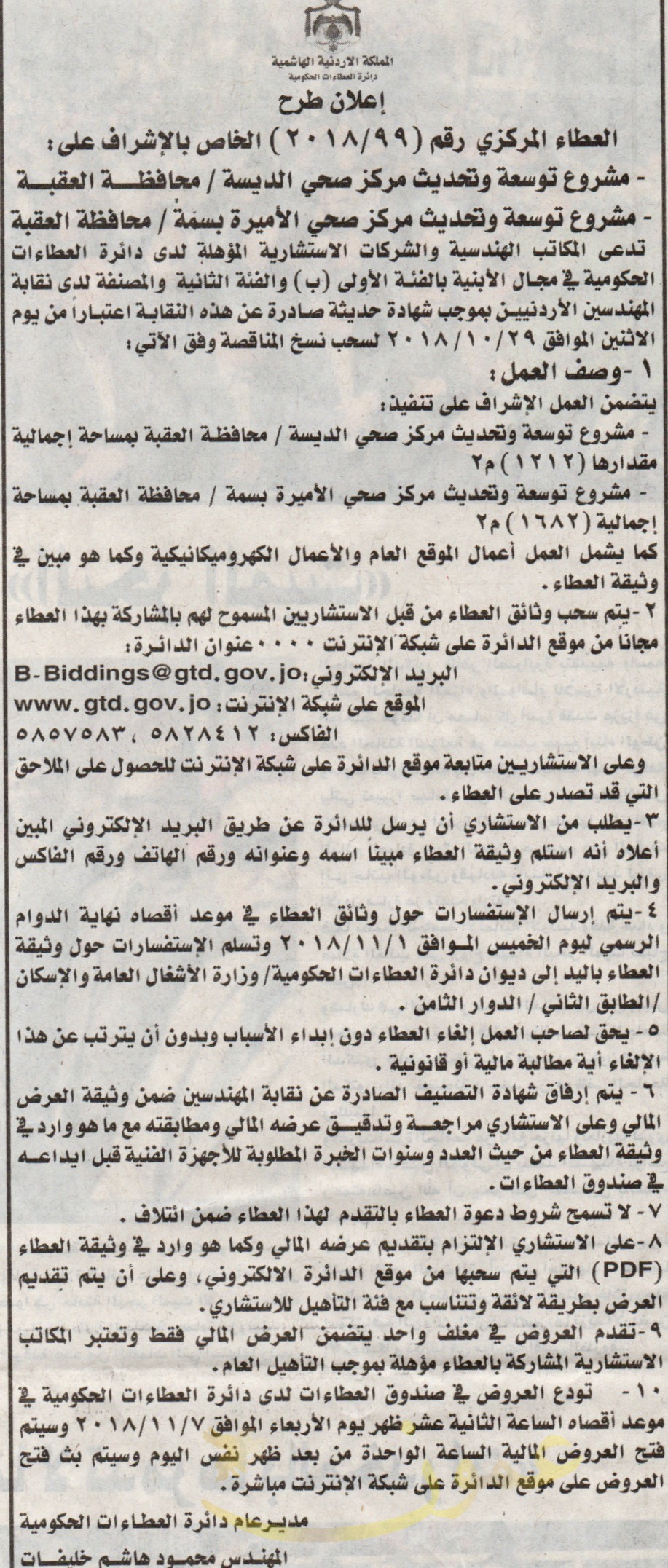 توسعة وتحديث مركز صحي الديسة - العقبة