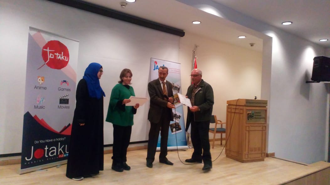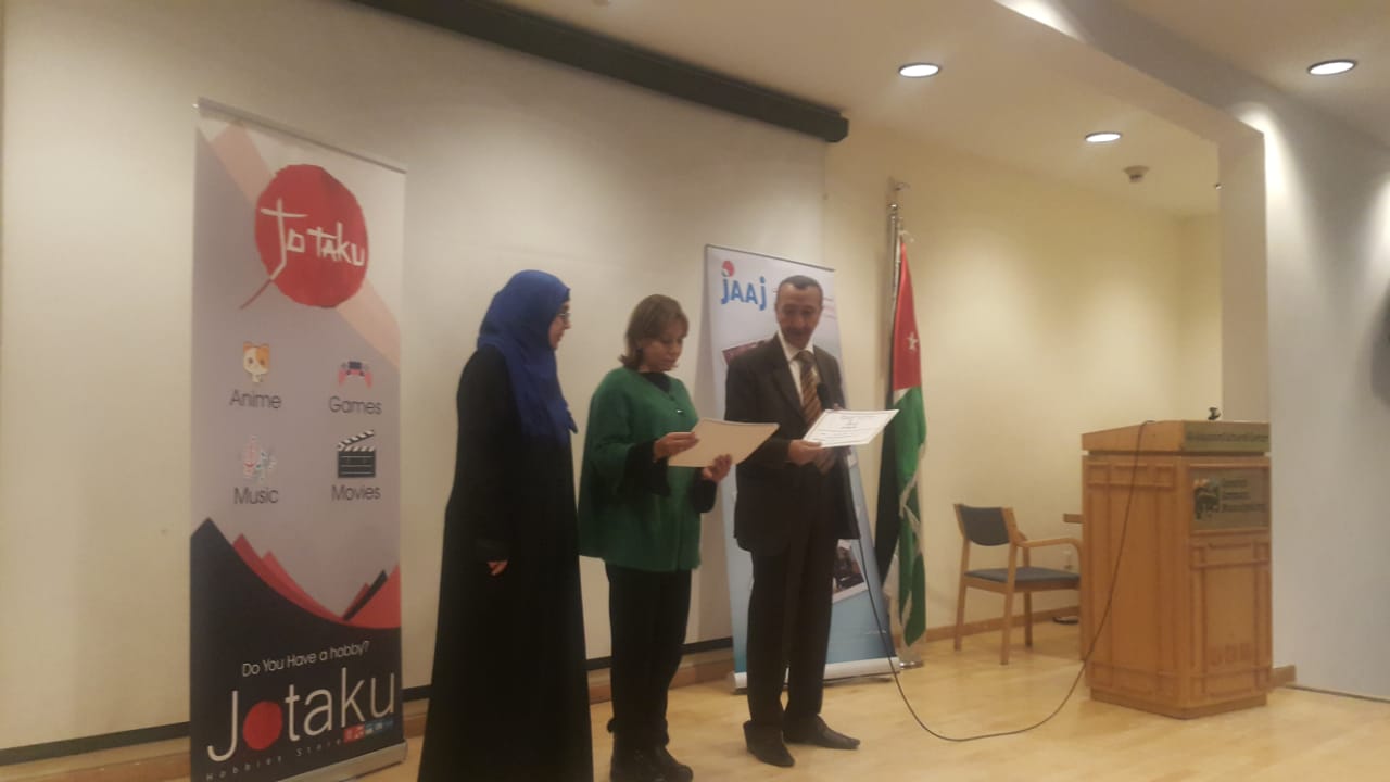 المهندس يوسف معدي رئيس الجمعية الاردنية لخريجي جايكا اليابانية رحب بالحضور من المهتمين بثقافة الانمي والمانجا اليابانية وبين مدى اهمية هذا الحدث في الساحة الثقافية الاردنية وهنا ياتي دور الجمعية في دعم وتنمية وتطوير القطاع الثقافي الاردني من خلال دمج الثقافة اليابانية بالثقافة العربية والوصول الى المستوى المطلوب مستهدفين الشباب وتنمية قدراتهم الثقافية بما يخدم الوطن.