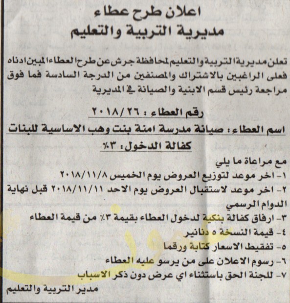 صيانة مدرسة امنة بنت وهب - مديرية تربية وتعليم جرش