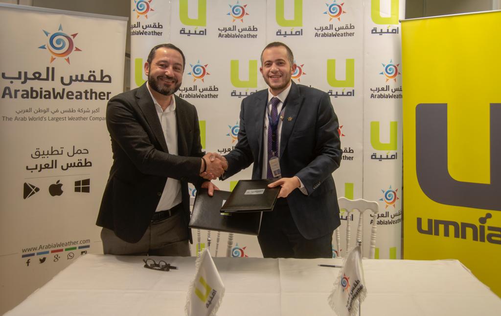 عمون - أعلنت شركة "طقس العرب ArabiaWeather Inc."، الرائدة والمتخصّصة في مجال توفير بيانات حلول الأعمال الخاصّة بالطقس لمُختلف القطاعات في الوطن العربي، عن دخولها شراكة استراتيجية مع شركة "أمنية" للاتصالات. وتم التوقيع على الشراكة رسمياً يوم الثلاثاء الموافق 6 من تشرين الأول في المقر الرئيسي لشركة "طقس العرب" بمجمّع الملك الحسين للأعمال في عمّان، الأردن.