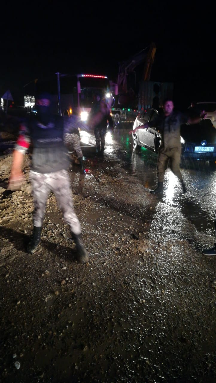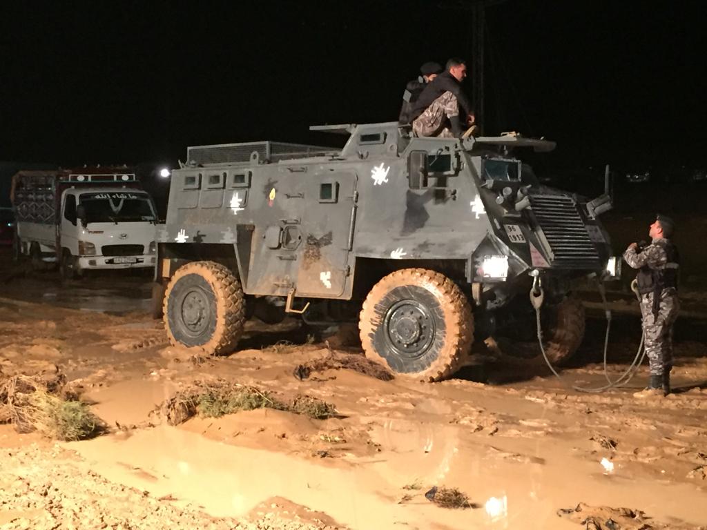ووصلت آليات وناقلات الجنود إلى منطقة ضبعة وساندت جهود فرق الدفاع المدني والأمن العام في عمليات البحث والإنقاذ، وقامت بفتح الطريق العام من خلال سحب أكثر من 10 آليات تعطلت أو حاصرتها السيول، وتسببت بإغلاق الطريق.
