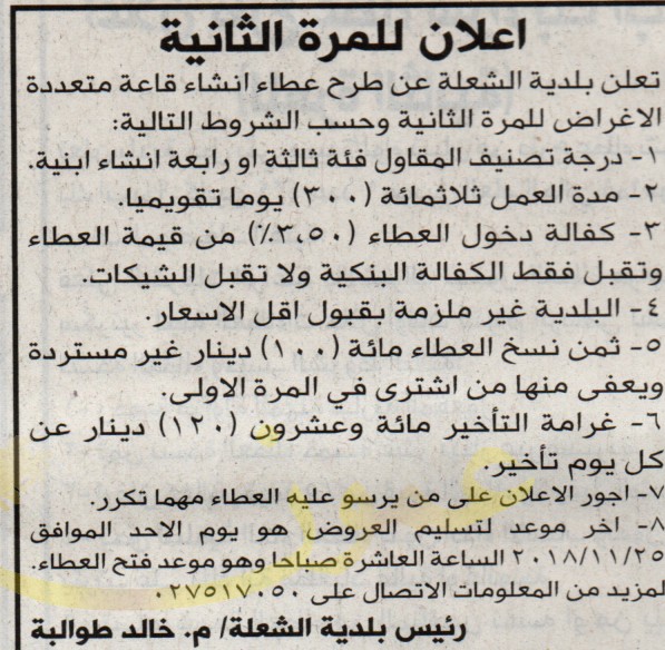 انشاء قاعة متعددة الاغراض - بلدية الشعلة