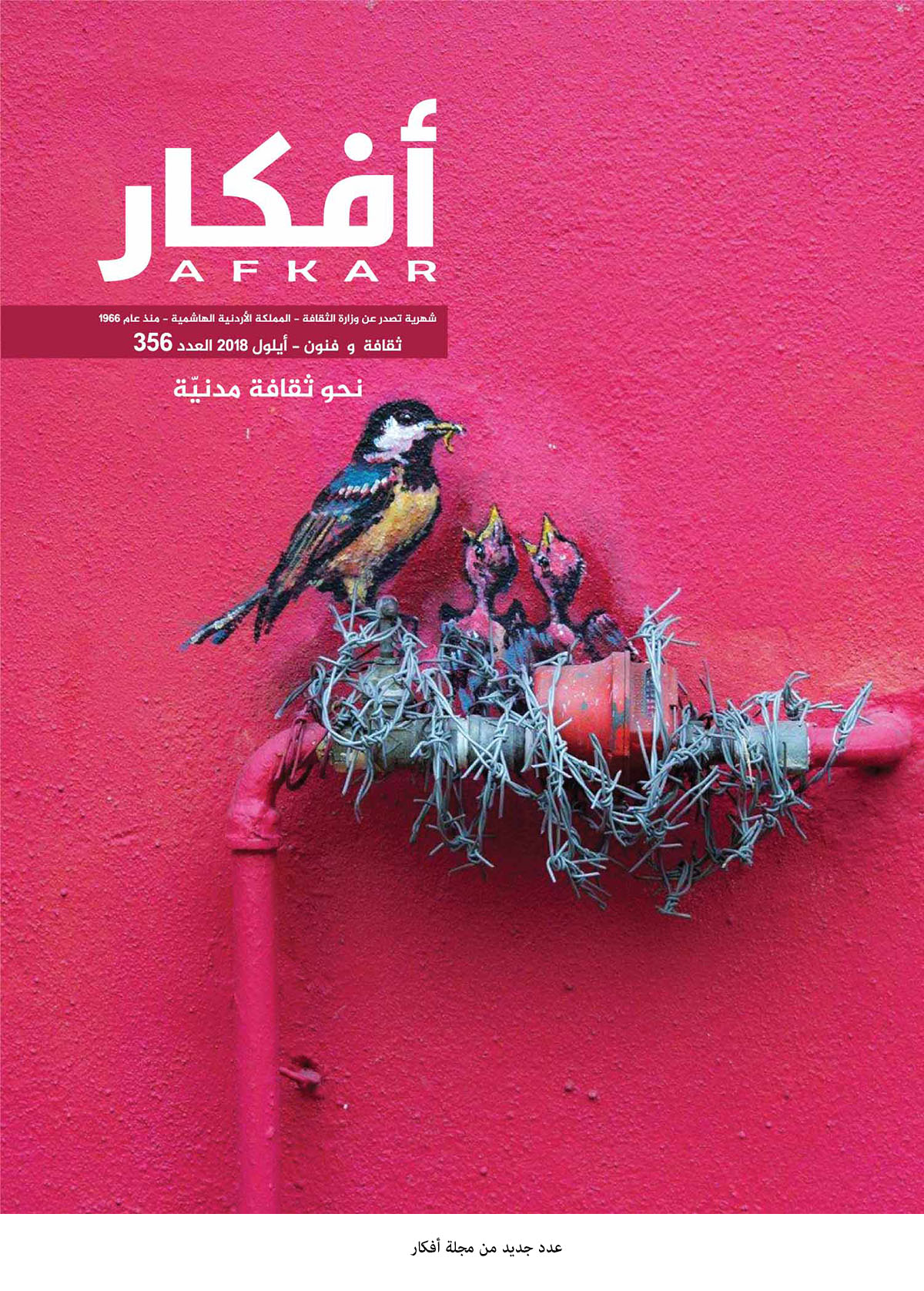 عمون- صَدَرَ حديثا العدد 356 من مجلة "أفكار" الشهريّة التي تصدُرها وزارة الثَّقافة، ويرأس تحريرها الدكتور سمير قطامي، متضمِّنًا مجموعة من الموضوعات والإبداعات الجديدة التي شارك في كتابتها نخبة من الكُتّاب الأردنيّين والعرب.